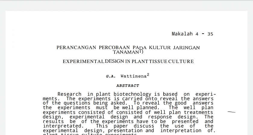 PERANCANGAN PERCOBAAN PADA KULTUR JARINGAN TUMBUHAN by Watiwena